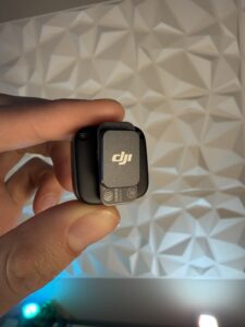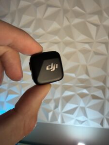 La característica más impactante del DJI Mic Mini es su tamaño ridículamente compacto. El transmisor (TX) pesa apenas 10 gramos (sin el clip magnético). Es tan ligero que puedes olvidarte de que lo llevas puesto; no tira del cuello de las camisetas ni resulta incómodo tras horas de uso. Sus dimensiones son de tan solo 26.55 × 26.06 × 15.96 mm. Para que te hagas una idea real de su tamaño, mira esta imagen: